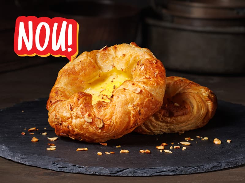 GRÂU, margarină (ulei de palmier, ulei de rapiță, ulei de cocos, emulsifiant: mono- și digliceride ale acizilor grași, corector de aciditate: acid citric), 5% preparat pentru cremă [amidon modificat, zer pudră (LAPTE), pudră de grăsime vegetală (grăsime de cocos, sirop de glucoză, proteină din LAPTE), LAPTE praf degresat, stabilizatori: fosfat disodic, alginat de calciu, difosfat tetrasodic, 0,01% aromă naturală de vanilie, colorant: beta-caroten, arome naturale], OUĂ pasteurizate, ALUNE DE PĂDURE, drojdie, glazură pe bază de zahăr (agent de glazurare: izomalt, zahăr, agent de îngroșare: agar, corector de aciditate: acid citric), amidon din cartof și GRÂU, pastă de alune (MIGDALE), stabilizator: pectină, arome naturale, agenți de tratare a făinii: acid ascorbic, alfa-amilază, xilanază, transglutaminază.